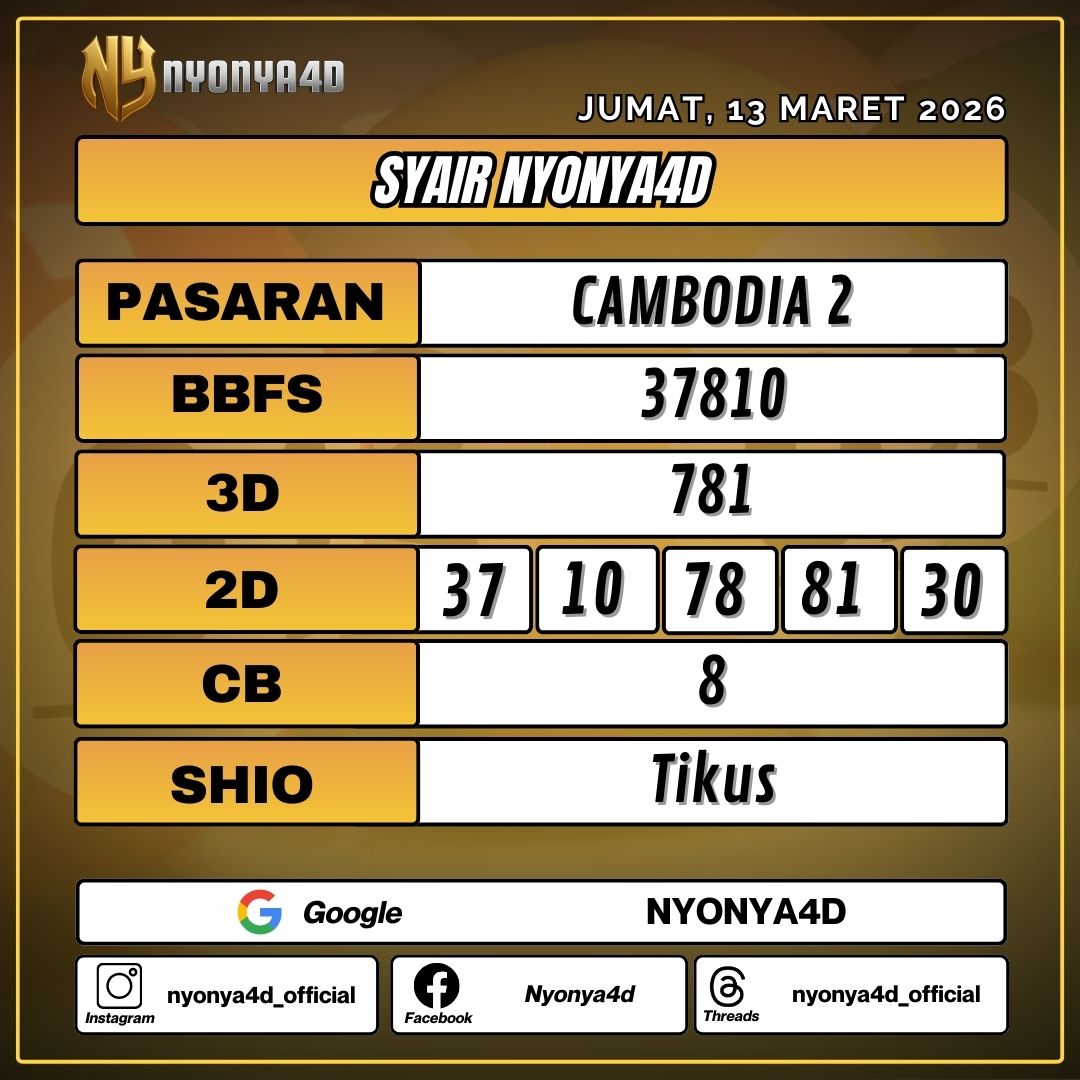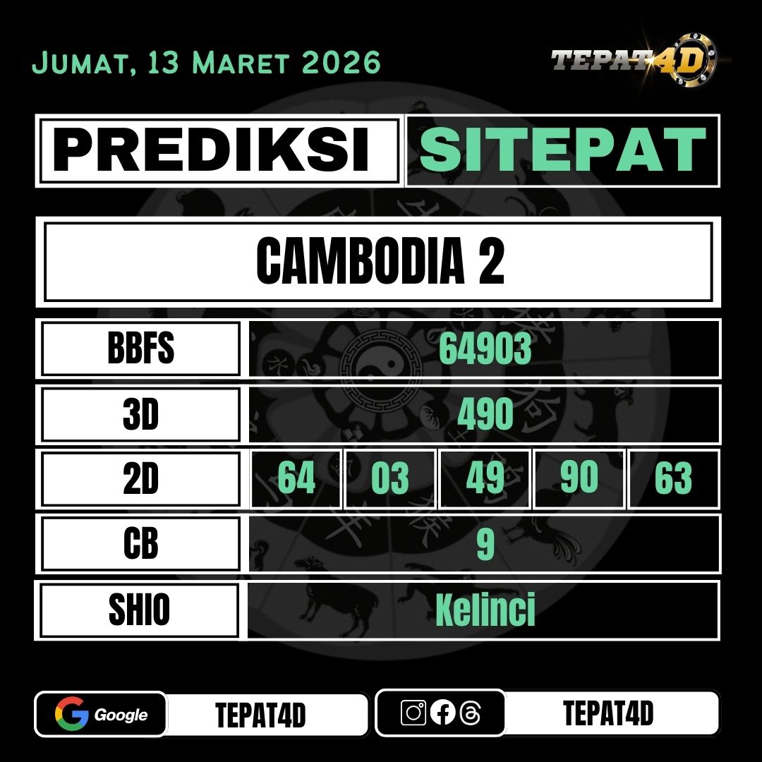 Data Keluaran dan Paito Warna Cambodia merupakan kumpulan result yang diambil dari website resmi www.officialcambodiapools.net dengan tujuan untuk mempermudah master-master dalam meracik rumusan angka di pasaran Cambodia 2. Result Pasaran Cambodia 2 setiap hari di jam 14:50 WIB