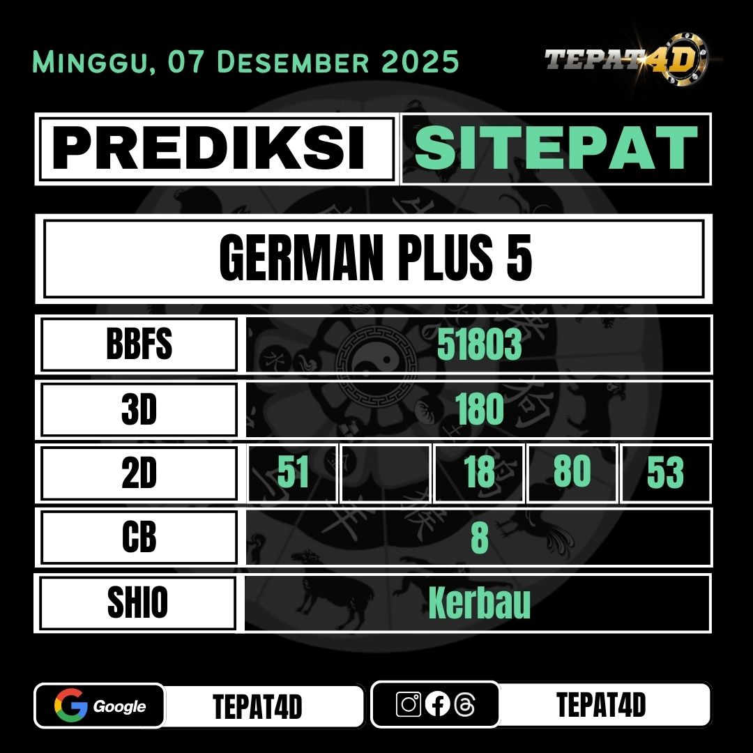 Data Keluaran dan Paito Warna German Plus merupakan kumpulan result yang diambil dari website resmi www.keno.de dengan tujuan untuk mempermudah master-master dalam meracik rumusan angka di pasaran German Plus. Result Pasaran German Plus setiap hari di jam 00:10 WIB