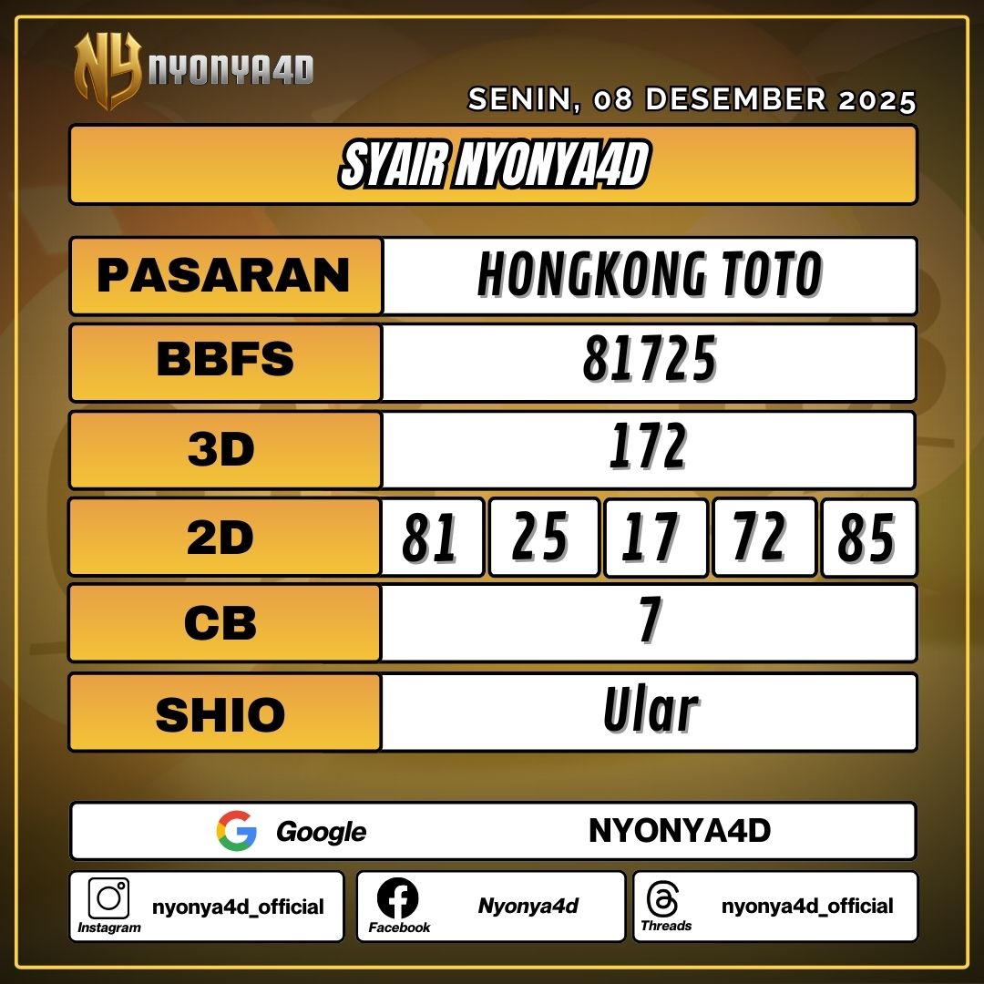 Data Keluaran dan Paito Warna Hongkong Toto merupakan kumpulan result yang diambil dari website resmi www.hongkongtoto.org dengan tujuan untuk mempermudah master-master dalam meracik rumusan angka di pasaran Hongkong Toto. Result Pasaran Hongkong Toto setiap hari di jam 12:30 WIB
