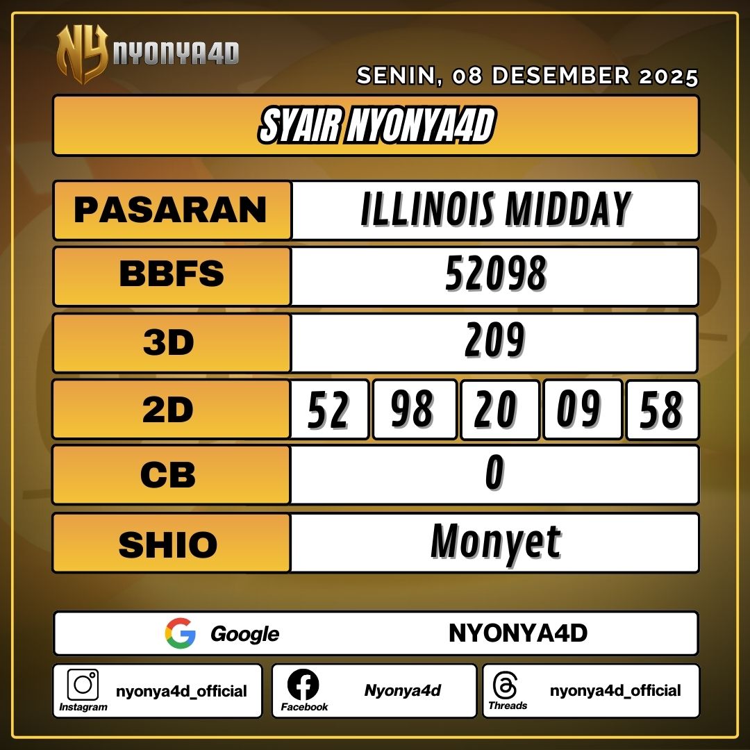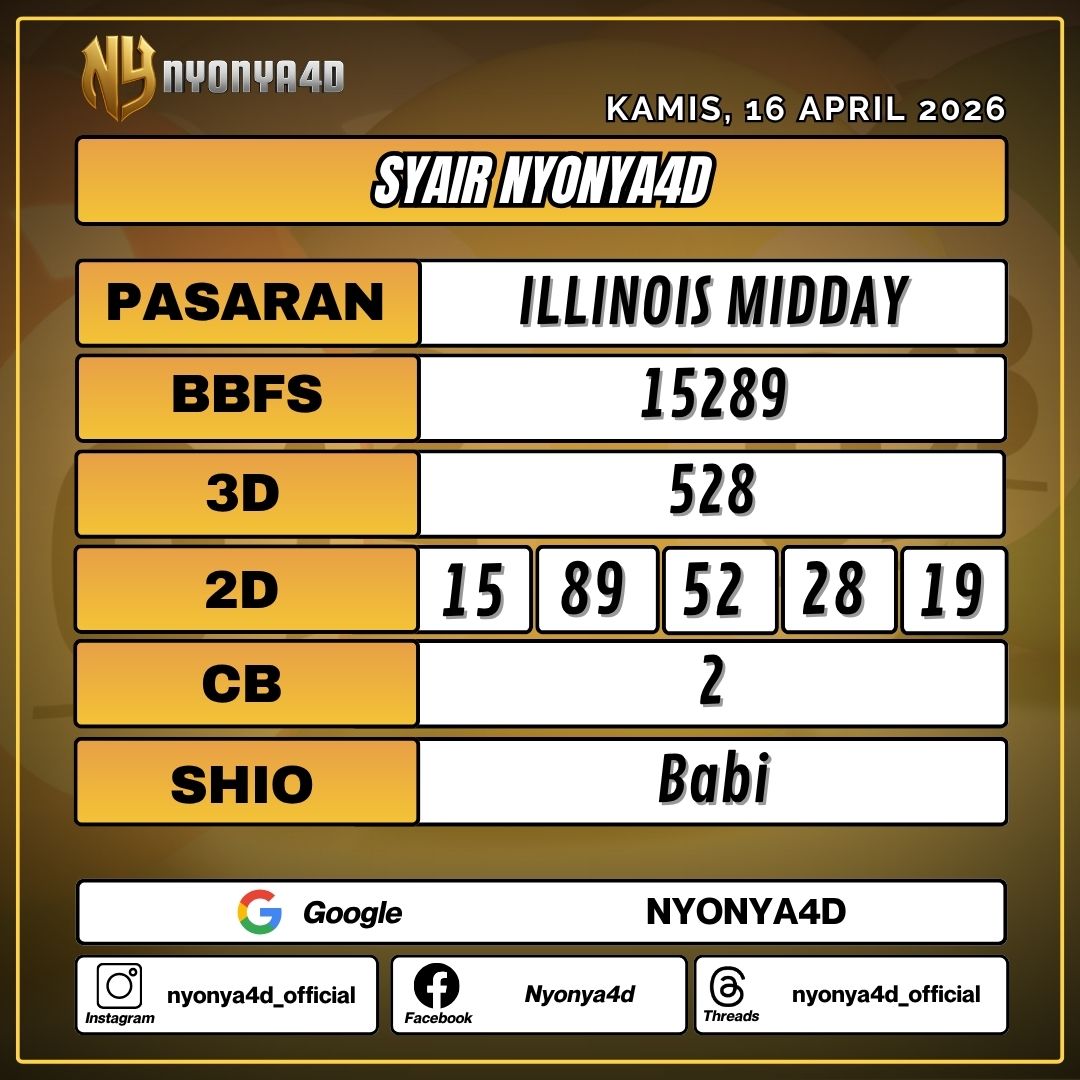 Data Keluaran dan Paito Warna Illinois merupakan kumpulan result yang diambil dari website resmi www.illinoislotterynumbers.net dengan tujuan untuk mempermudah master-master dalam meracik rumusan angka di pasaran Illinois Midday. Result Pasaran Illinois Midday setiap hari di jam 00:40 WIB