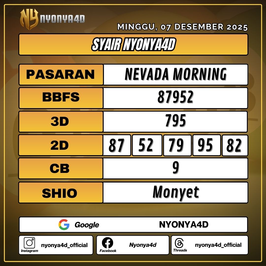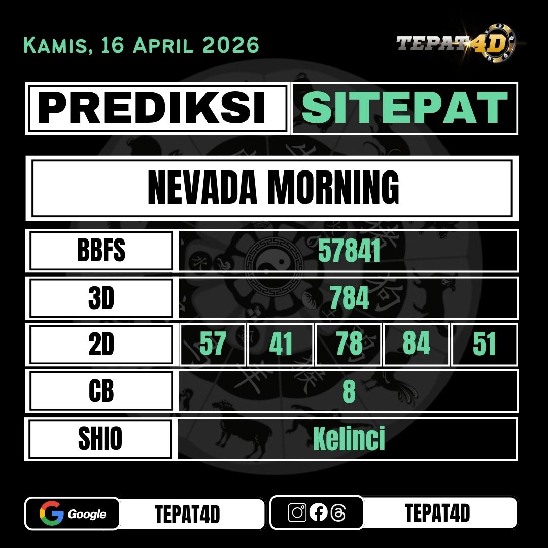 Data Keluaran dan Paito Warna Nevada merupakan kumpulan result yang diambil dari website resmi www.nvdwinninglottery.com .com dengan tujuan untuk mempermudah master-master dalam meracik rumusan angka di pasaran Nevada Morning. Result Pasaran Nevada Morning setiap hari di jam 00:16 WIB