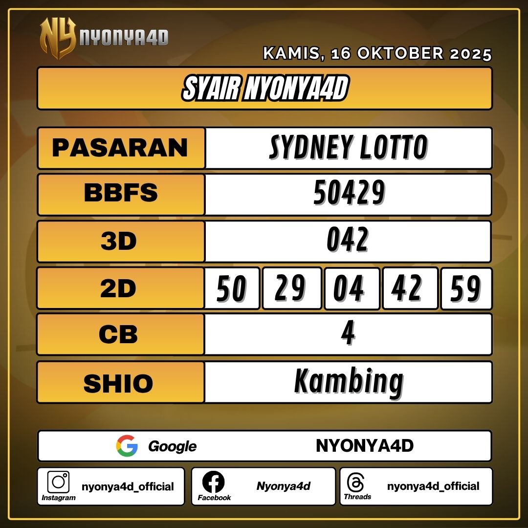 Data Keluaran dan Paito Warna Sydney merupakan kumpulan result yang diambil dari website resmi https://sydneylotto.today/ dengan tujuan untuk mempermudah master-master dalam meracik rumusan angka di pasaran Sydney. Result Pasaran Sydney setiap hari di jam 13:50 WIB